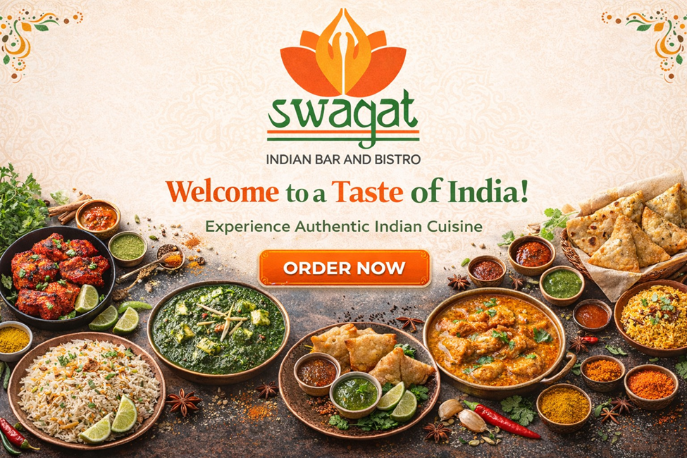 Whether you’re gathering with friends, relaxing at the bar, or ordering online for pickup or delivery, Swagat India Bar & Bistro brings warm hospitality and unforgettable flavors to your table. Rooted in tradition and served with pride this is Indian dining, the Swagat way
